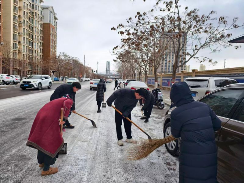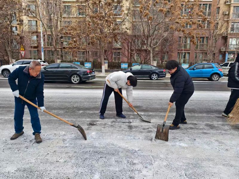 当日上午,皇冠线上体育职工携带铁锹、扫帚、除雪铲等工具准时抵达责任街道。该街道作为皇冠线上体育环境卫生责任区域,因夜间降雪导致路面湿滑,给过往行人及车辆带来严重安全隐患。参与人员迅速展开除冰扫雪工作,重点铲除人行道结冰,清理非机动车道积雪。大家不畏严寒,以饱满的工作热情和实际行动,为市民开辟出安全畅通的出行通道。